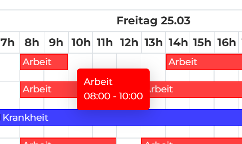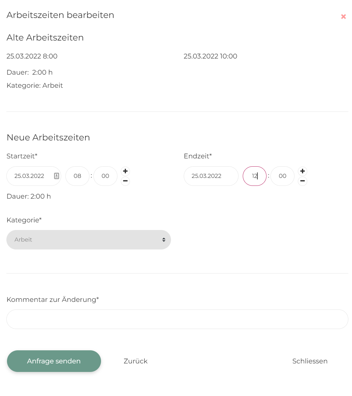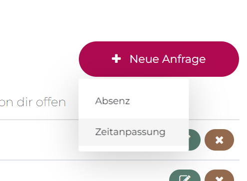 Wird länger als geplant gearbeitet, kann der Mitarbeitende dem Admin eine Anfrage für die Mehrarbeit (oder weniger Arbeit) senden.