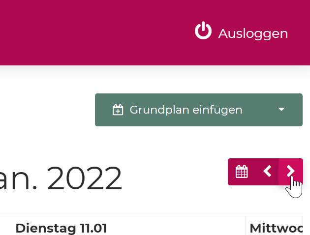 Über die Vor- und Zurück-Pfeile auf der rechten Seite kann man im Kalender vorwärts oder zurückblättern.