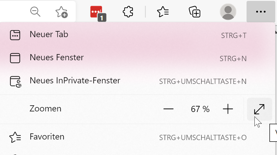 Will man gar keinen Balken mehr und nur noch den Eisnatzplan, kann man im Browser wie folgt vorgehen und den Vollbildmodus aktivieren.